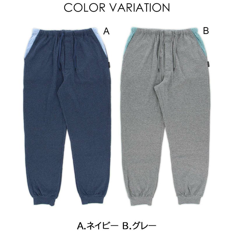 年間を通して人気の接結天竺素材。薄い天竺素材を重ねて、接結点で留めています。柔らかい風合いにファンが多い素材です。パンツにはあえて前開きを付ける事で、パジャマの替えズボンとしてもオススメができます。