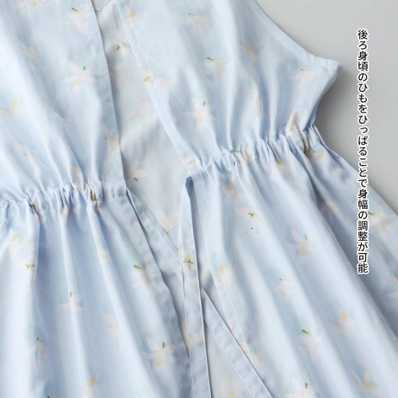 LANVINCOLLECTIONランバンコレクション形態安定加工カトレア柄綿100%サテンストライプ後結び背付きエプロンレディース70043004