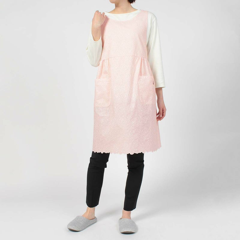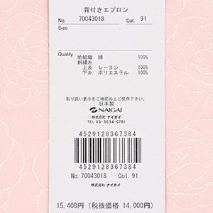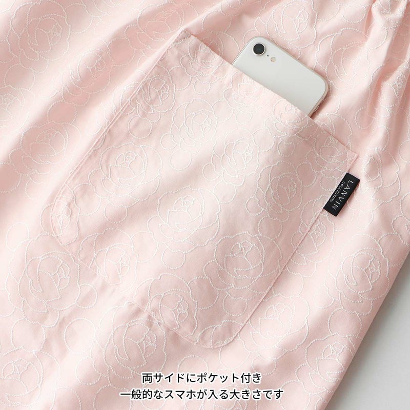 5. LANVIN COLLECTION エクセロンローズ柄 綿100% 日本製 刺繍生地 後結び 背付き エプロン レディース 70043018