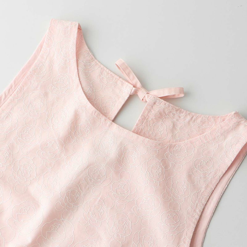 ランバン ブランド エプロン さりげなく浮かび上がる刺繍のローズ模様 袖なし LANVIN COLLECTION エクセロンローズ柄 綿100% 日本製 刺繍生地 後結び 背付き エプロン レディース 70043018