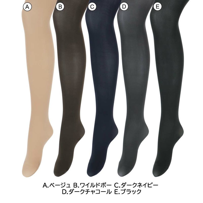 50デニール プレーティング タイツ、シルクプロテイン加工でなめらかな肌触り、マットな質感、つま先スルー、股底マチ付、消臭糸使用