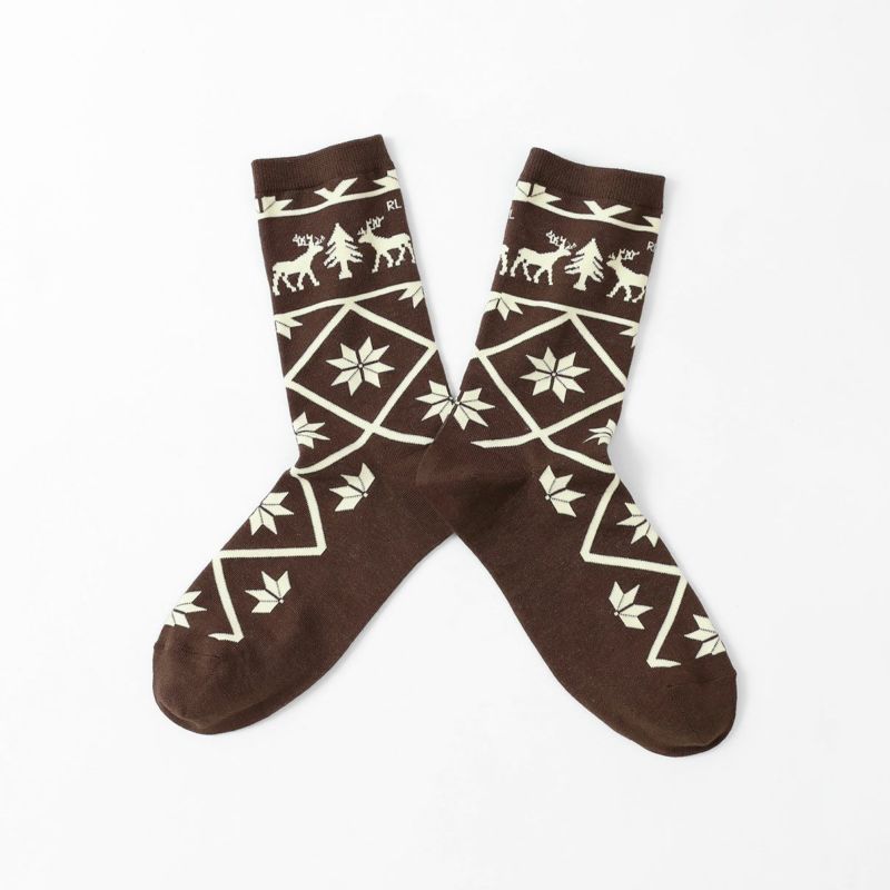 全体にあしらわれたスノーフレーク(雪の結晶)柄が、シーズナルな華やかさをプラスします。ポロらしいクラシックな色合いとデザインで、足元にさりげないおしゃれ感を。