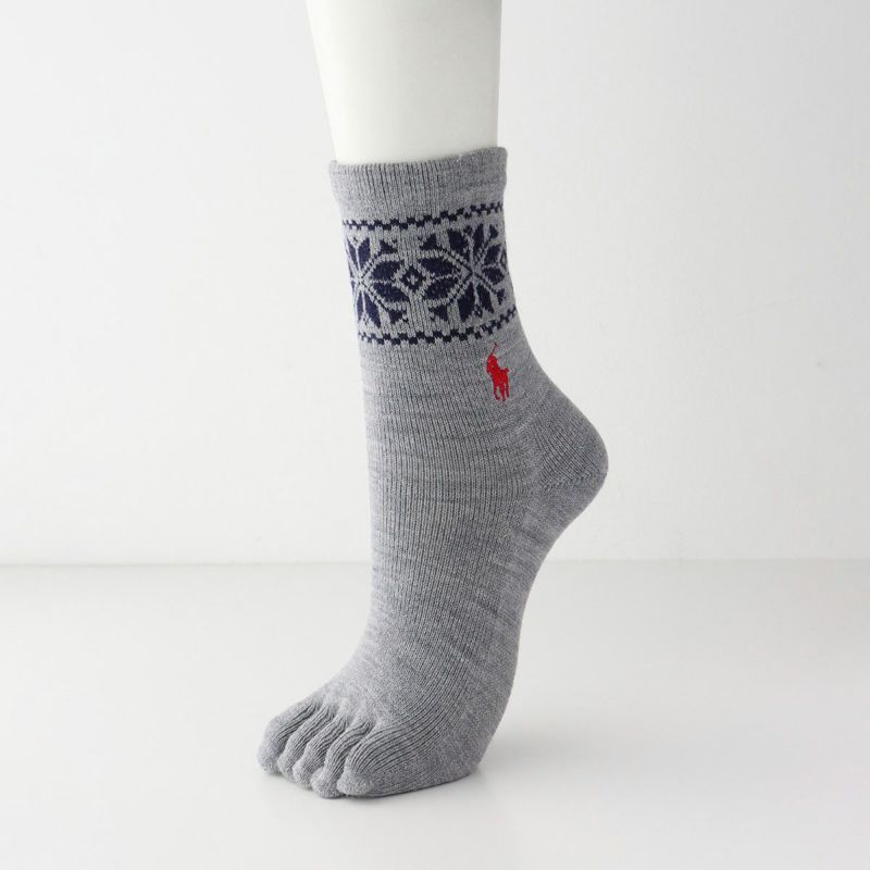 5. POLO RALPH LAUREN 毛混 5本指ソックス フェアアイル柄 クルー丈 レディース 日本製 03208702