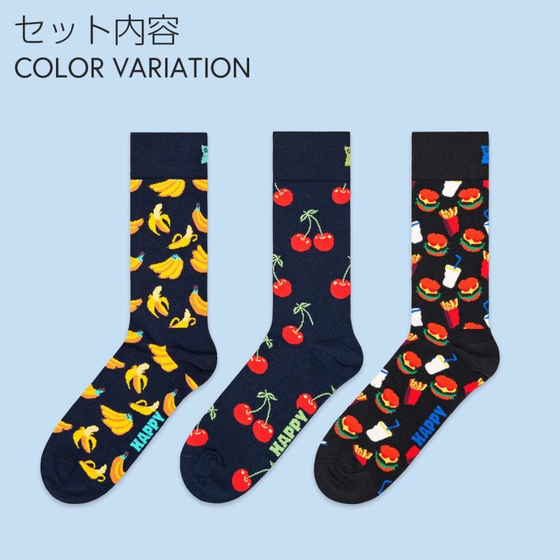 大切な人へのフルコースです。まずはバナナから始めて、ハンバーガーをむしゃむしゃ食べてから、チェリーをトッピングしましょう。おいしい!楽しみたい!という食欲を満たす、フードソックス ギフトセット3パックはいかがですか?