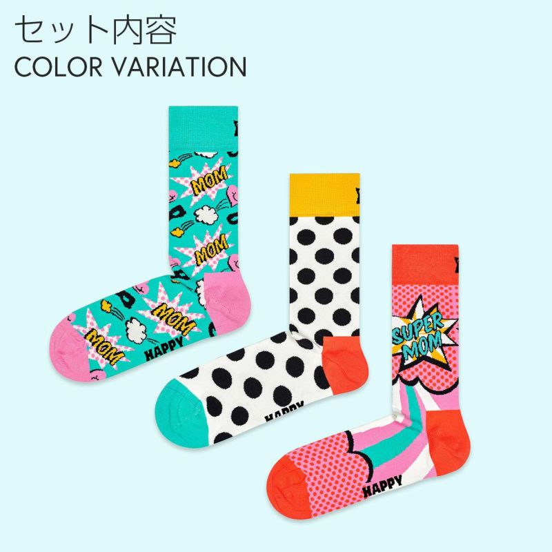 MAIN SOCKS クルー丈のベーシックシリーズモデル・ギフトBOX付き、ID:XMOT08-4300 3-Pack Mother's Day Socks Gift Set