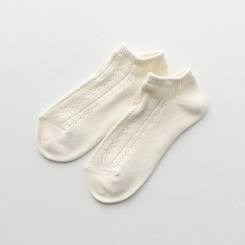 レトロでレディな雰囲気のかぎ編みデザインが可愛い靴下です。