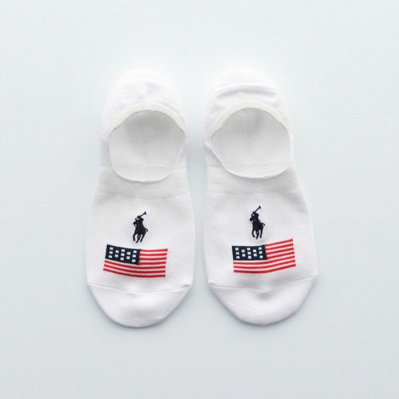 代表的なポニーロゴ刺繍と星条旗モチーフがデザインされたフットカバーです。