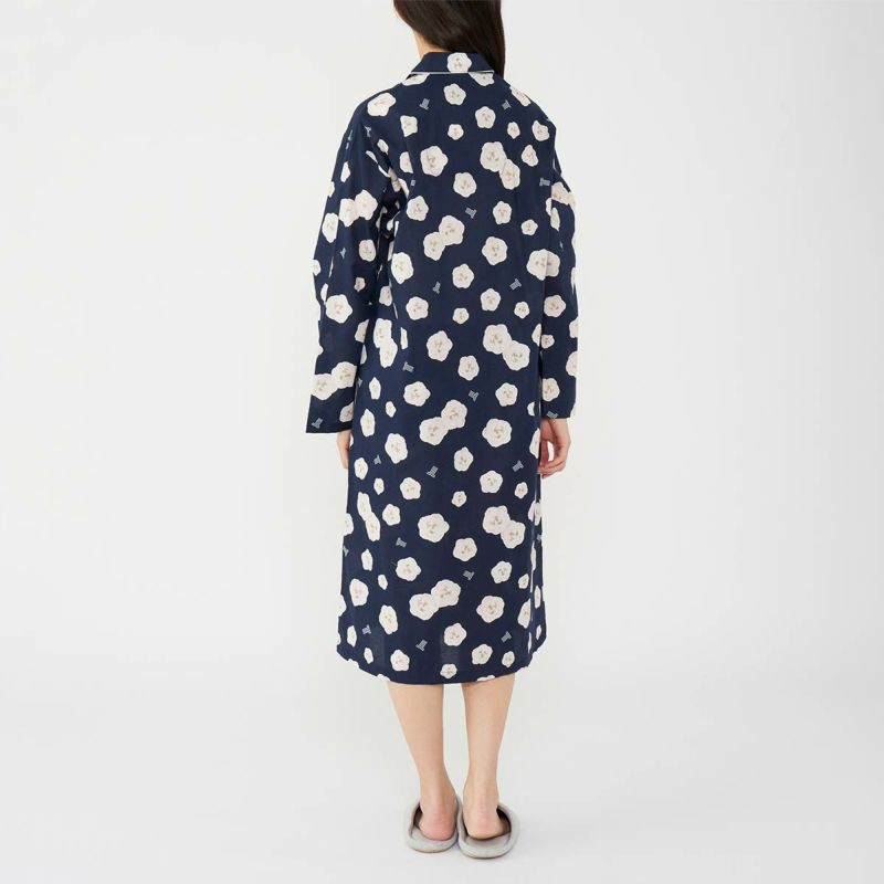 5. LANVIN COLLECTION 長袖 前開き ルームワンピース 綿100% ポンポンローズ柄 60ローン ヴィンテージフィール レディース 73044040