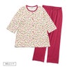 おすすめポイント優しい天竺シルクタッチの薄手七分袖パジャマ。パパイヤの花を全身に散りばめました。シビラ定番のスタンドカラーの前開きになります。ウエストゴ左脇にゴム交換口あり。