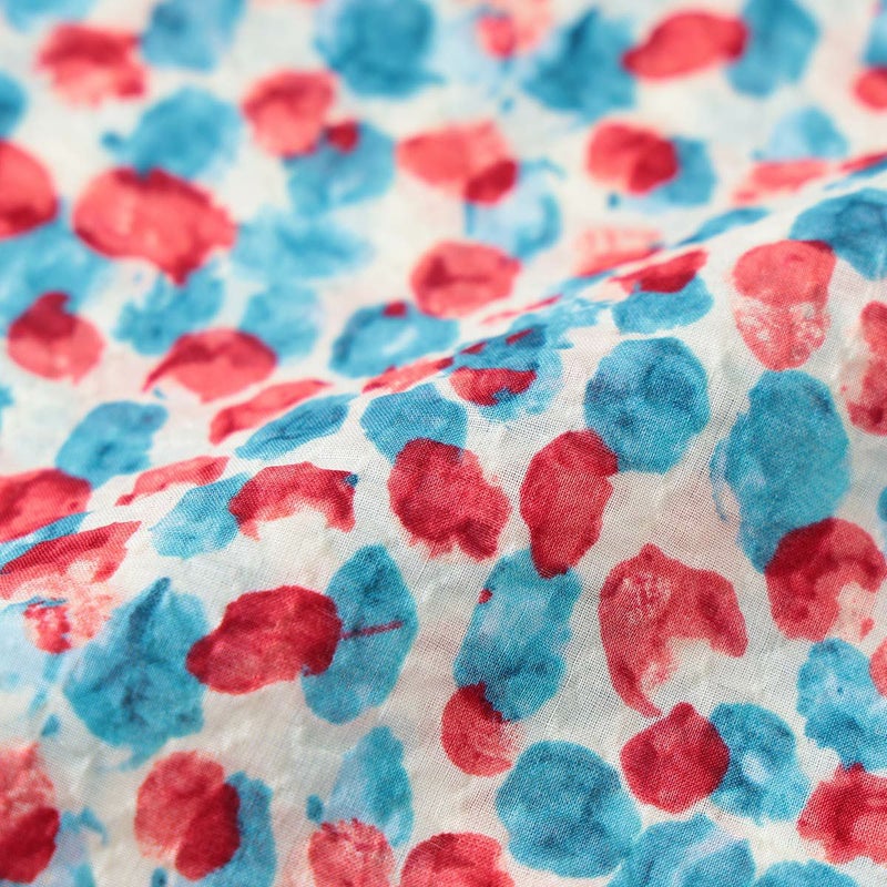 おすすめポイント8分袖、8分丈パンツの上下セット。筆で描いた2色のドットプリント柄です。