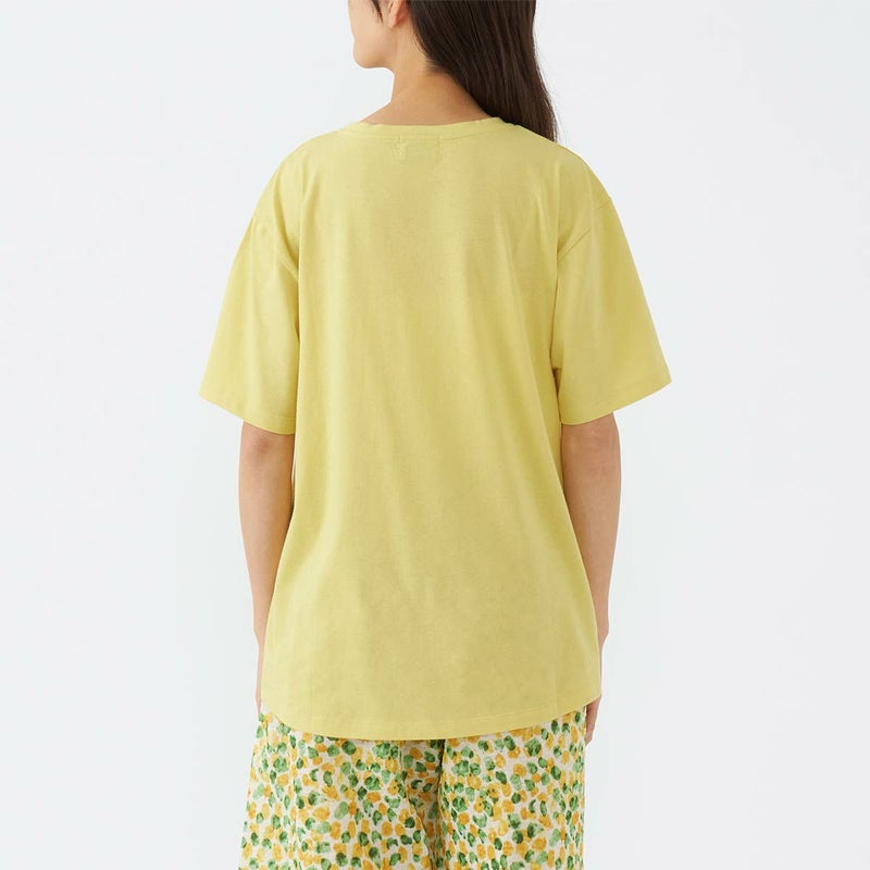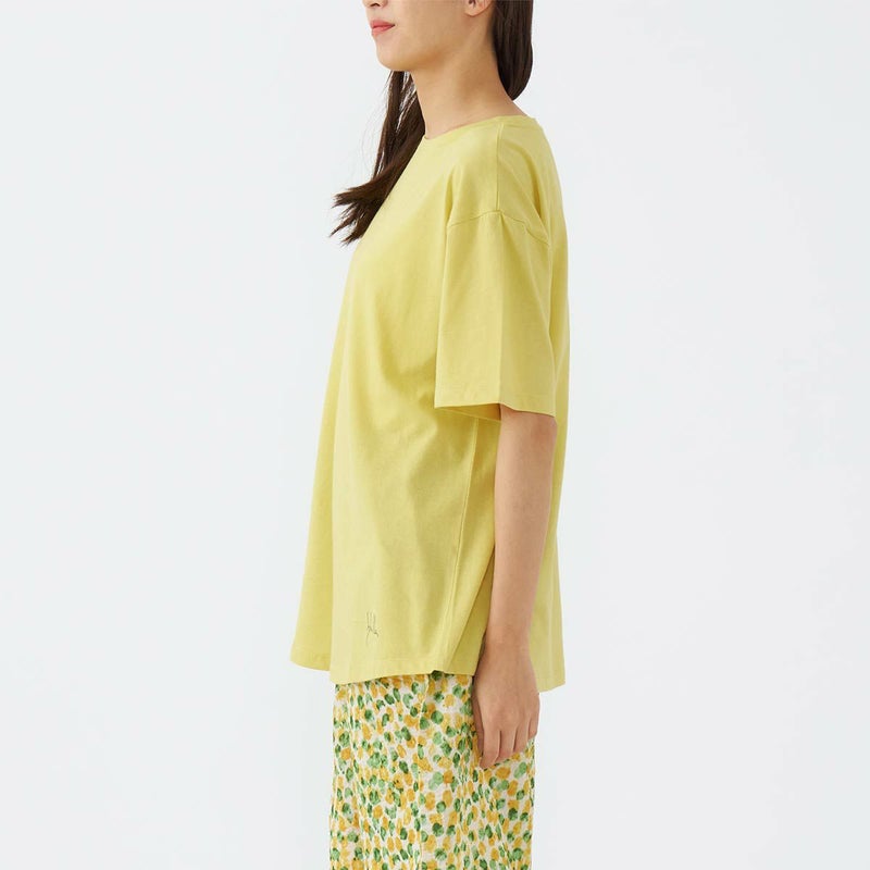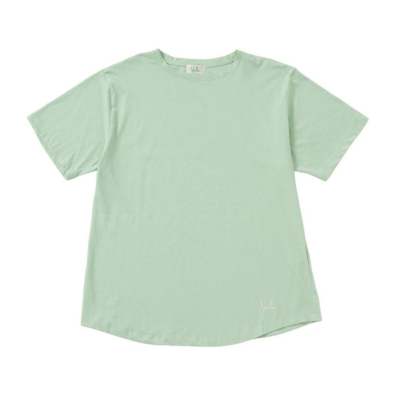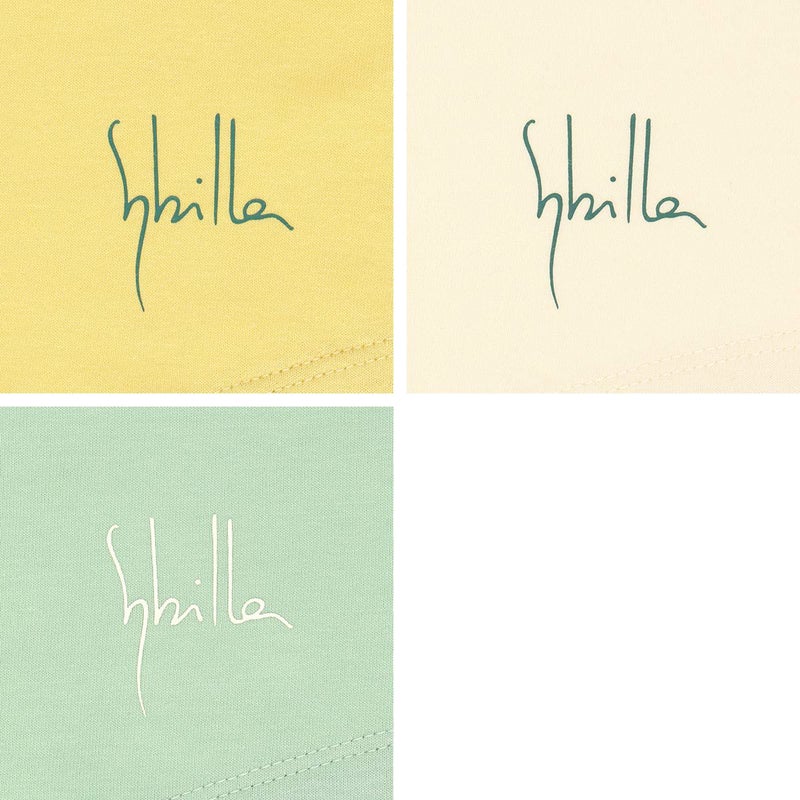 おすすめポイント単品コーディネートできる30天竺素材の半袖Tシャツ。左下にSybillaのロゴのプリント入り。