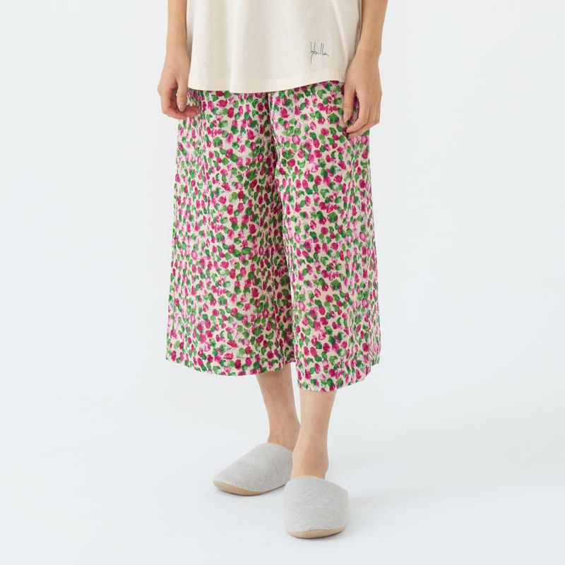 部屋着感覚で着れる単品パンツです。キュロット風で涼しく、肌離れが良いです。両脇にポケット付き。