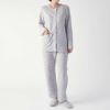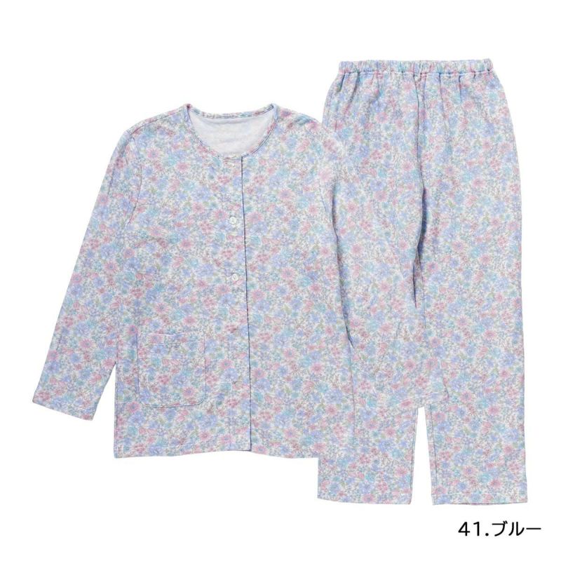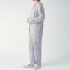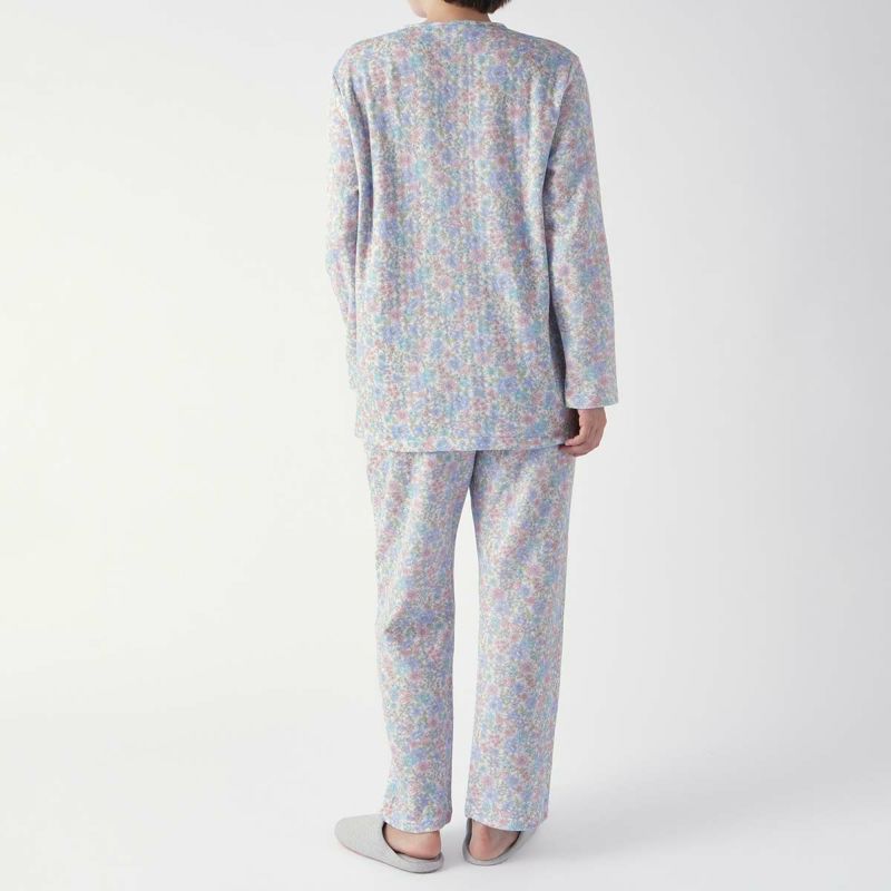 ソフトキルト・長袖長ズボン 衿付きパジャマ:肌側は天然素材の綿100%で汗をかいてもしっかり吸収します。中わたを挟んでいるのでほんのり暖かさを感じる優しい着心地。