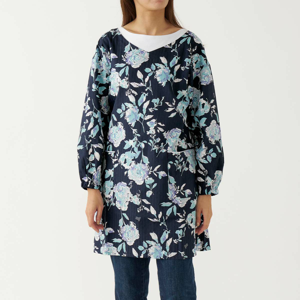 ランバン コレクション あたたかい ワンマイルウェア 花柄 袖付き 長袖 エプロン LANVIN COLLECTION 裏起毛 ポリエステル100% 後ボタン 割烹着 フェリシテローズ柄 かっぽう着 カッポー スモック エプロン レディース 70044019