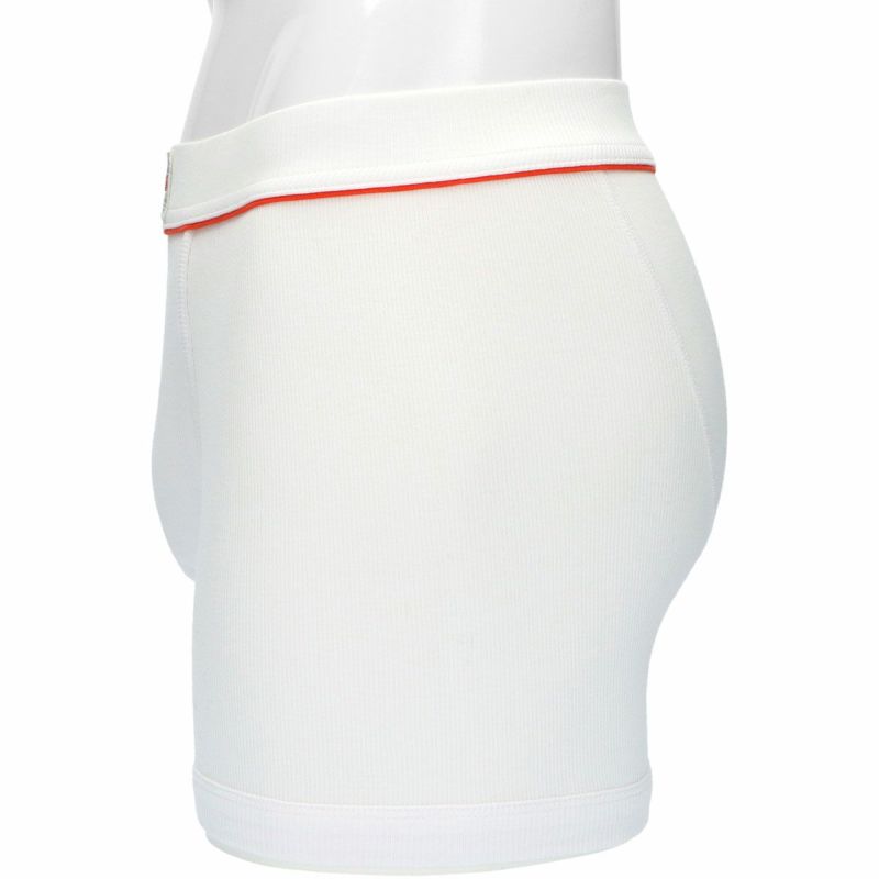 前あき・ボクサーブリーフ レギュラーライズのアイテムです。ストレッチコットンのダブルリブ素材を使用し、通気性の良い柔軟で快適なはき心地に仕上げています。 魅力的な限定デザインのロゴと、コントラストの効いたパイピングをウエストバンドに飾り、スポーティな雰囲気を際立てました。 |
