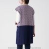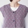 肩ひもではないので着くずれしにくいです。後ろ身ごろの腰ひもを引っぱって身巾を調整することができます。袖を通して着用できるので着脱がしやすい。エプロンですが洋服見えするスタイルで近年はこのスタイルが主流になってきています。