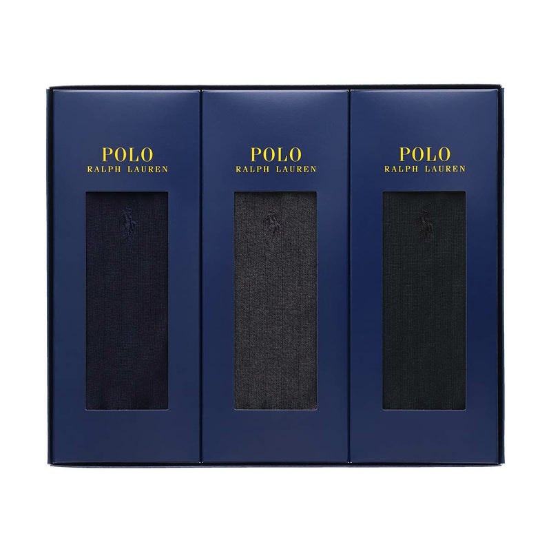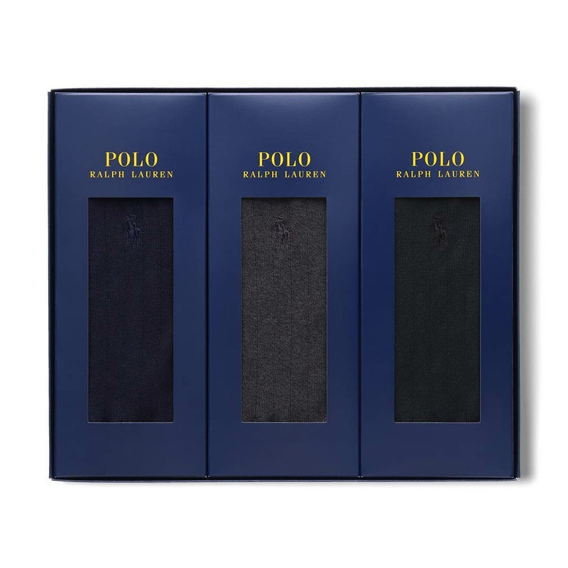 4. POLO RALPH LAUREN 3足組 ギフトセット 綿混 ワンポイント刺繍 無地リブ クルー丈 カジュアル ソックス メンズ 02092182 ( PL-30 ) giftset
