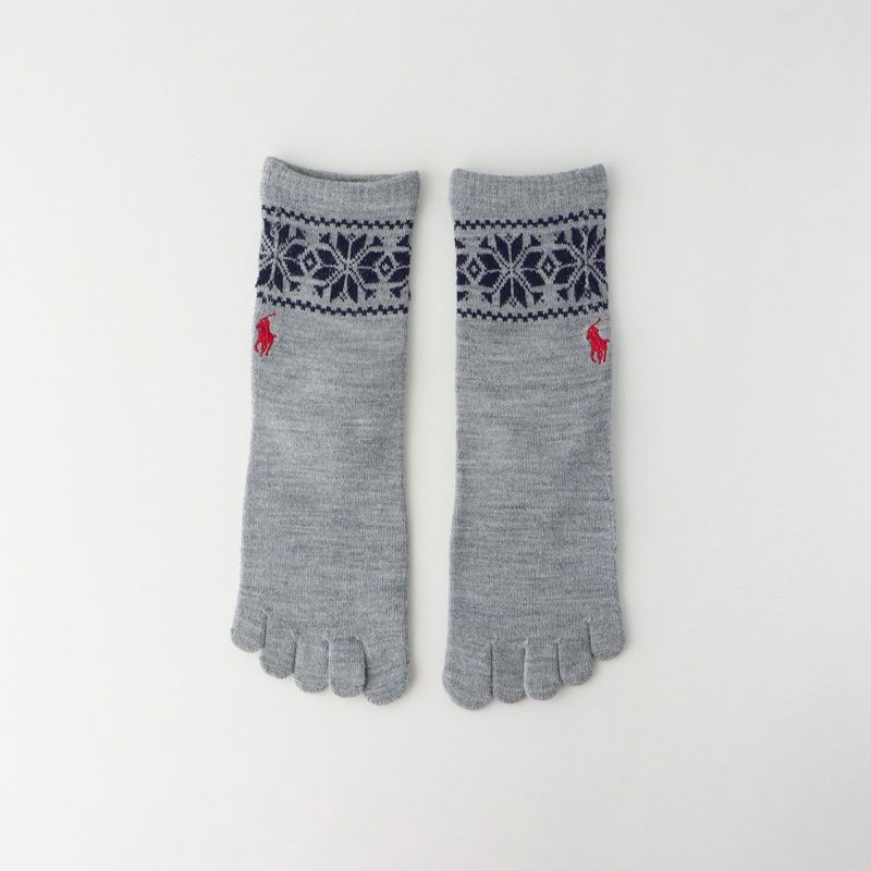 5. POLO RALPH LAUREN 毛混 5本指ソックス フェアアイル柄 クルー丈 レディース 日本製 03208702