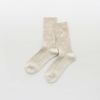 ケーブル編みと素材がとてもおしゃれにしてくれるソックスです。 色はホワイトを買いましたが、カジュアルなお洋服よりもちょっとよそゆきな感じのブラックワンピースなどにあわせてはきたいです。 丈感も絶妙なクルー丈です。
