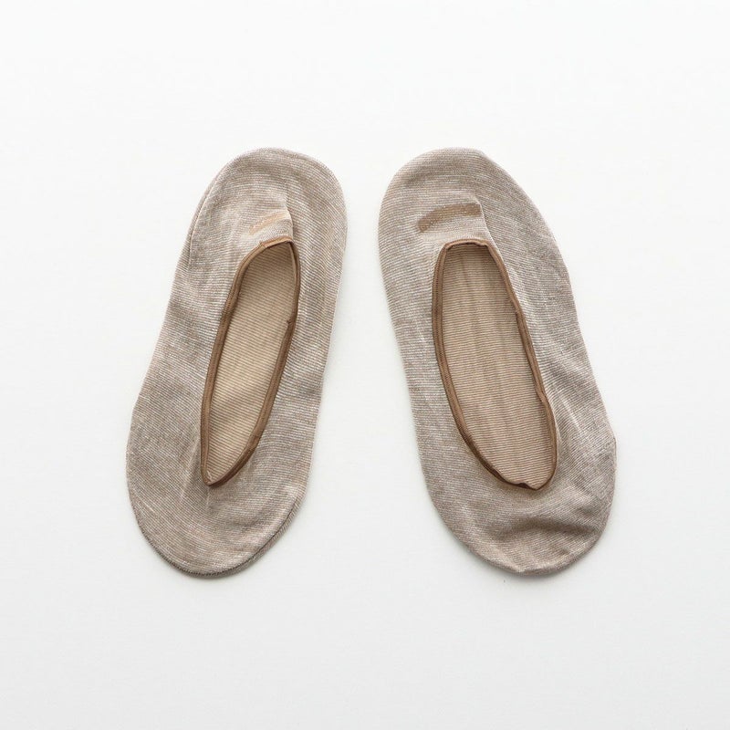 仕様・特徴 綿混極薄設計、風合いソフト、かかと滑り止め付き、やや浅履き、PP刺しゅうなし