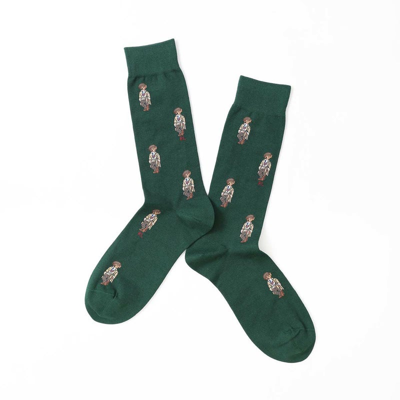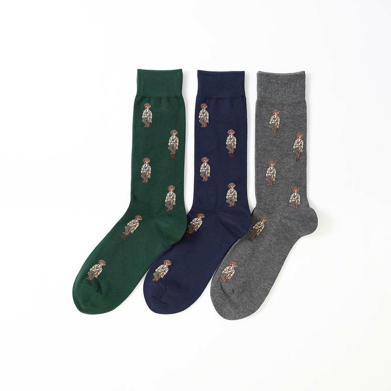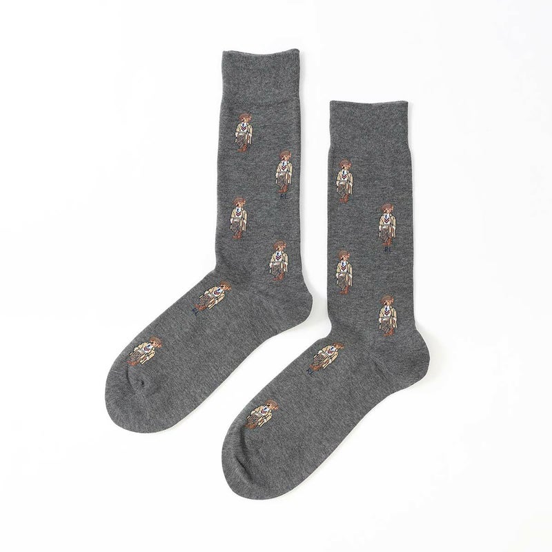 上品な装いのベアがデザインされた遊び心あふれるデザインソックスで、足元にクラシカルな存在感を演出します。