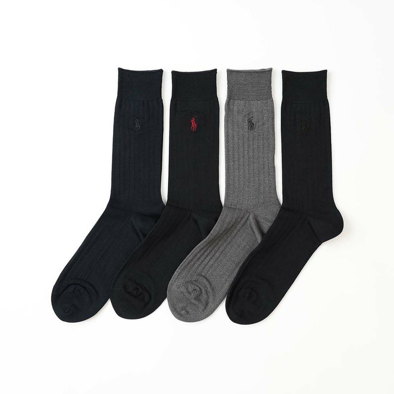 4. POLO RALPH LAUREN 抗菌防臭 10×1リブ ビジネスソックス ワンポイント クルー丈 メンズ 02042370