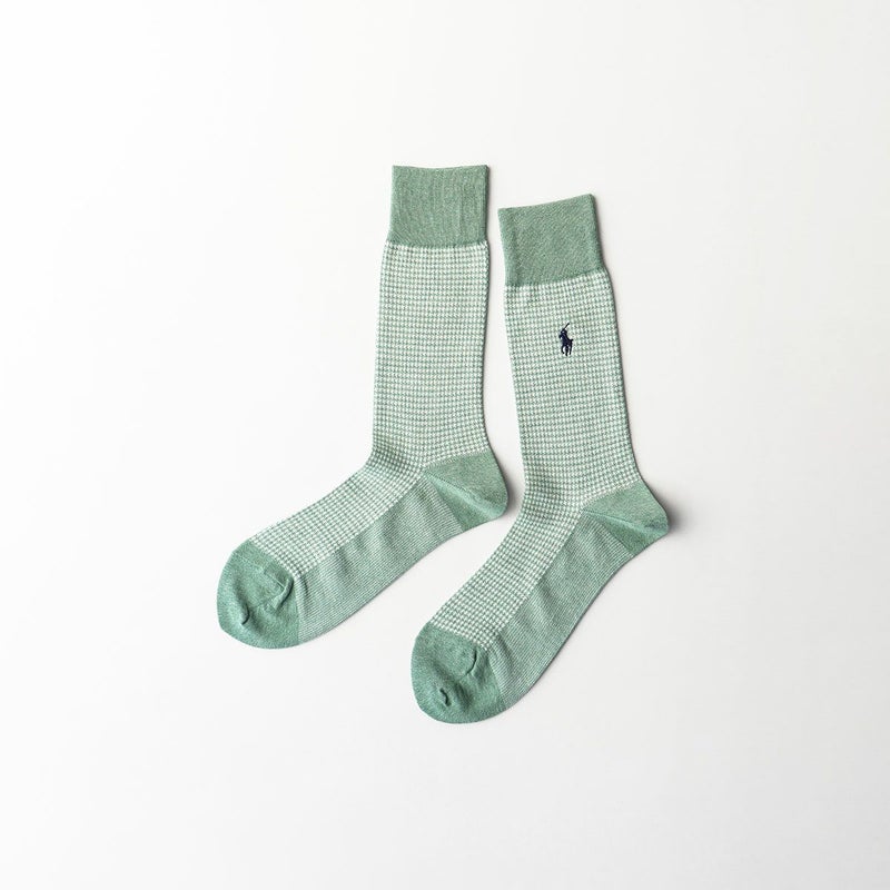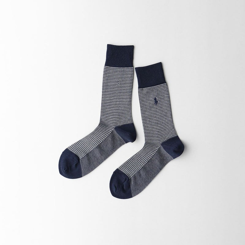 代表的なポニーロゴが刺しゅうされたカジュアルにもビジネスにも使える派手すぎないピンチェック柄のソックスです。