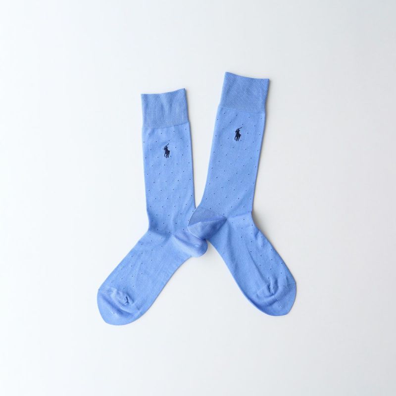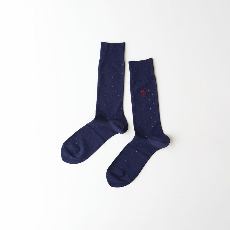 代表的なポニーロゴが刺しゅうされたカジュアルにもビジネスにも使える派手すぎない小さなドット柄のソックスです。