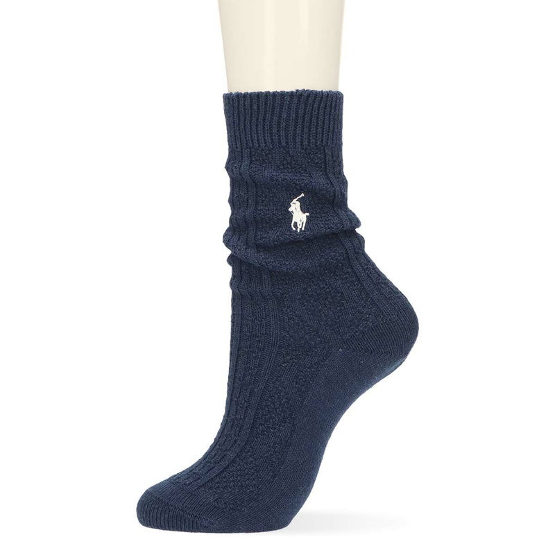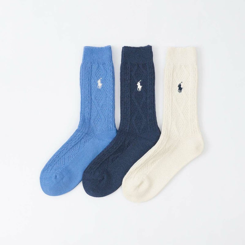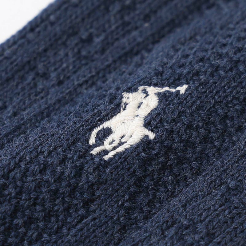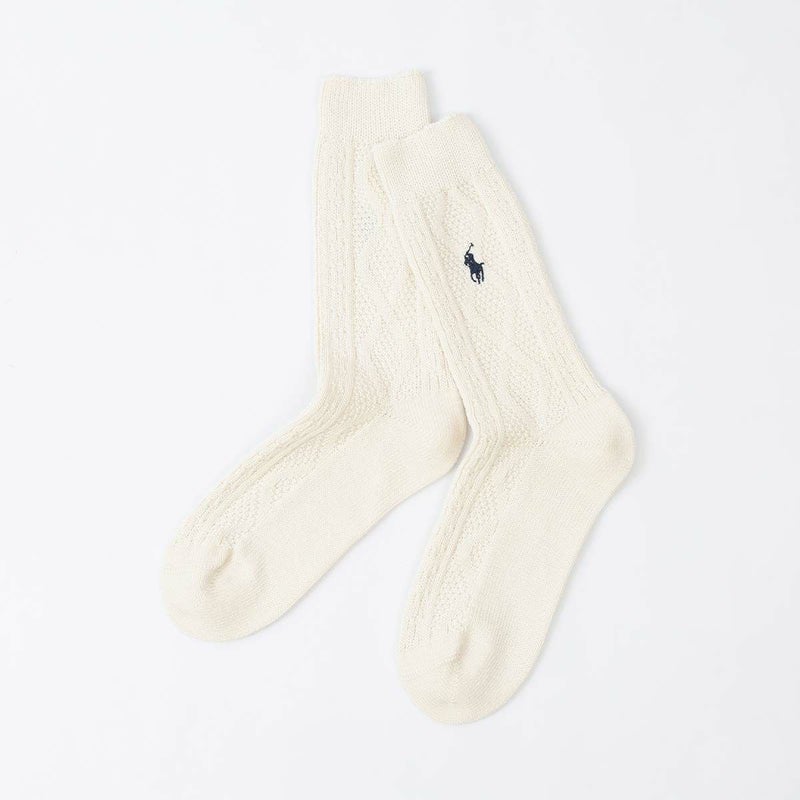 プレッピーなケーブル編みに代表的なポニーロゴが刺しゅうされたカジュアルソックスです。