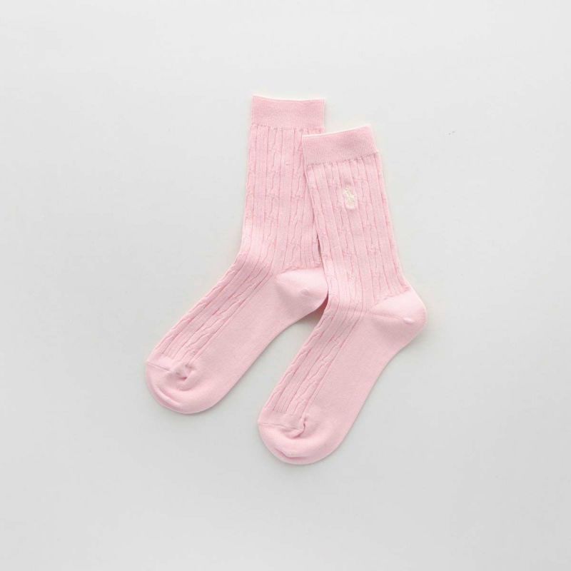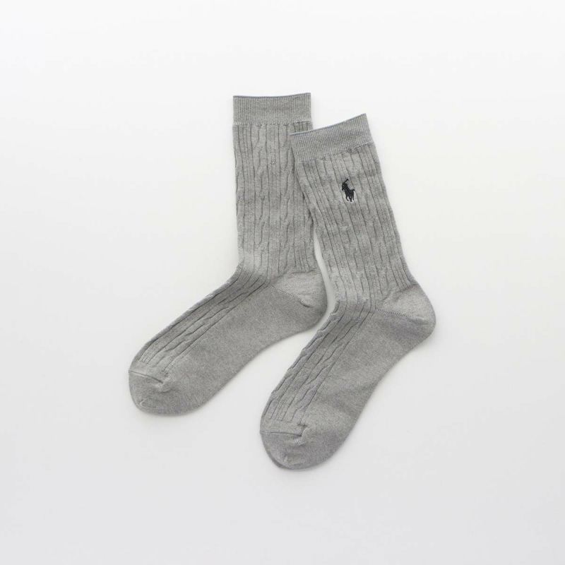 5. POLO RALPH LAUREN 綿レーヨンシルク混 クラシックケーブル ソックス クルー丈 レディース 03207559