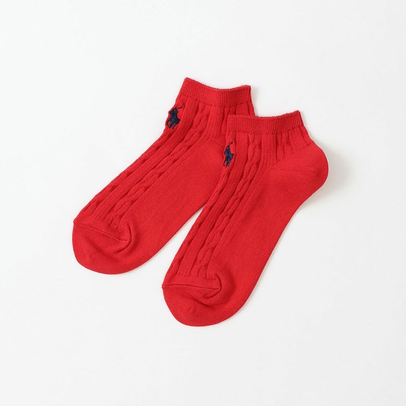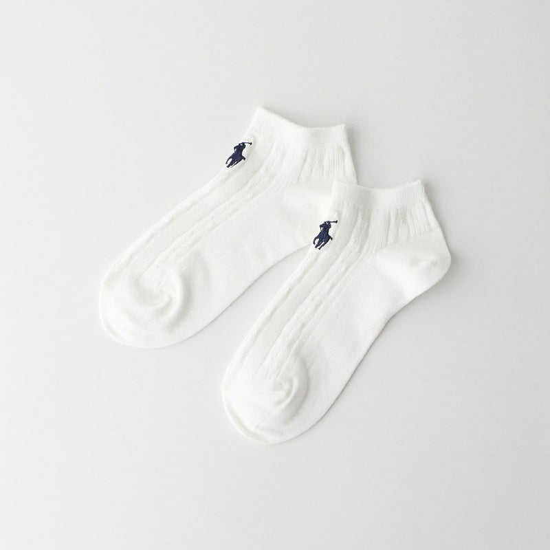 ポロ ラルフ ローレン 婦人 靴下 旧03207858 POLO RALPH LAUREN ケーブル柄 フロント刺繍 オーガニックコットン混 スニーカー丈 ソックス レディース 03207868