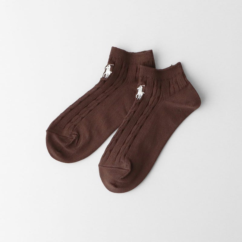 5. POLO RALPH LAUREN ケーブル柄 フロント刺繍 オーガニックコットン混 スニーカー丈 ソックス レディース 03207868