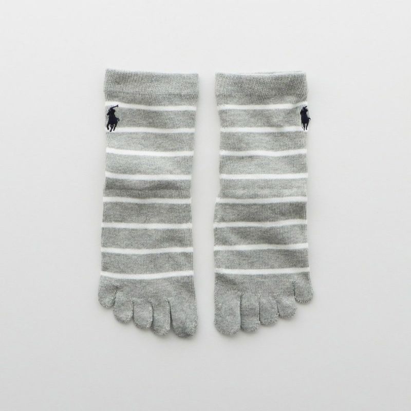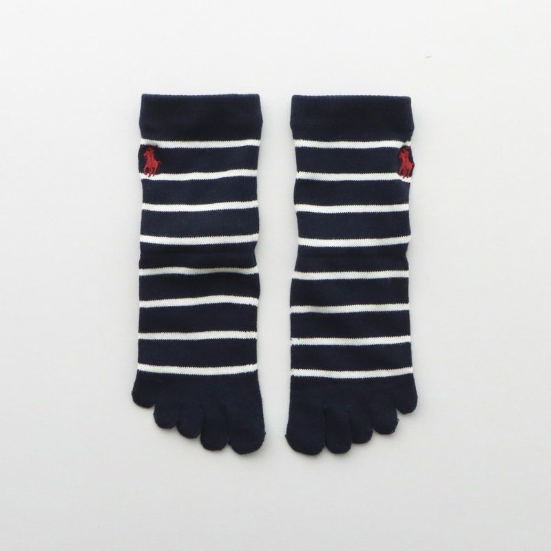 5. POLO RALPH LAUREN ボーダー 5本指ソックス オーガニックコットン混 ショート丈 レディース 03207963