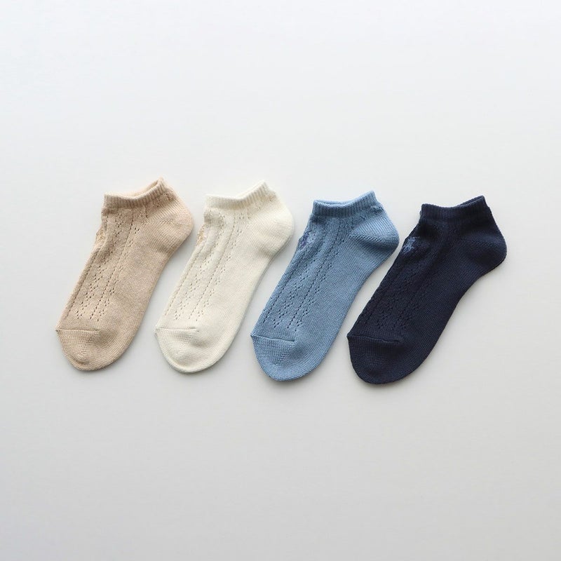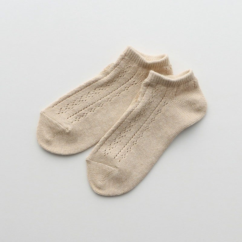 レトロでレディな雰囲気のかぎ編みデザインが可愛い靴下です。