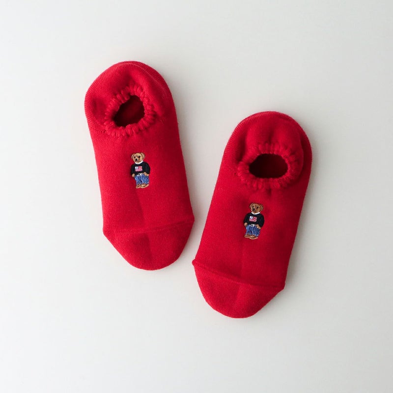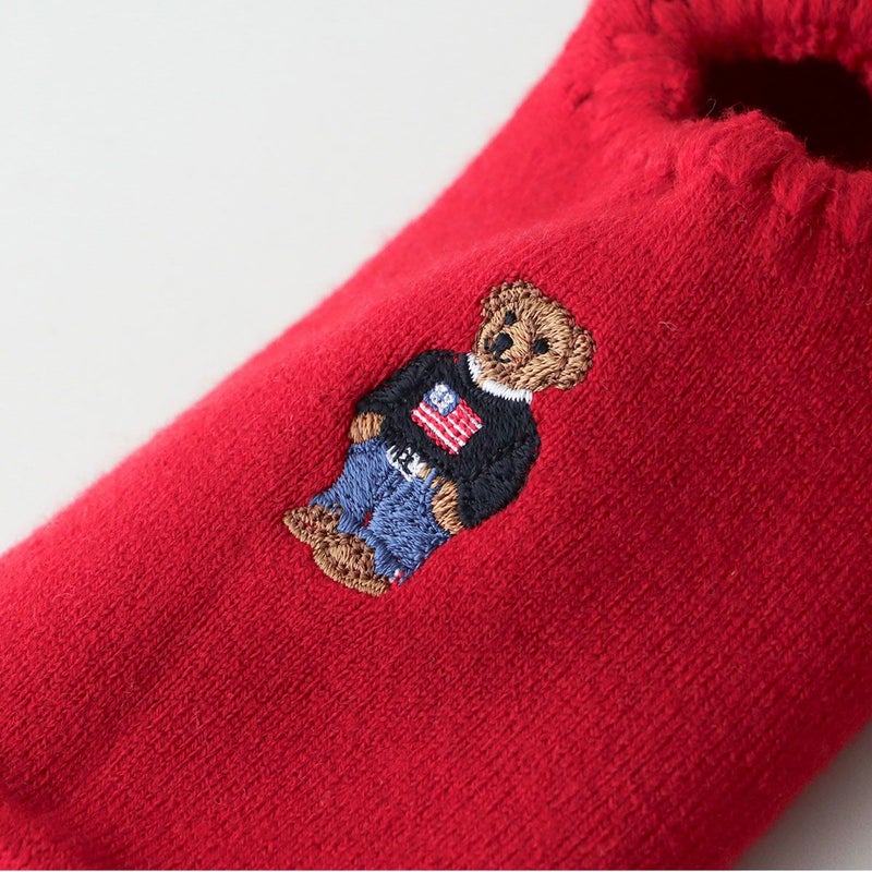 世界一“おしゃれなクマ”として知られる「ポロベア」が最もアイコニックな星条旗のセーターを着た刺しゅうが可愛いデザインです。