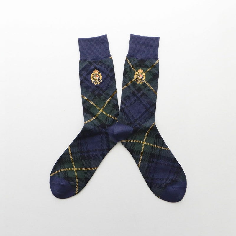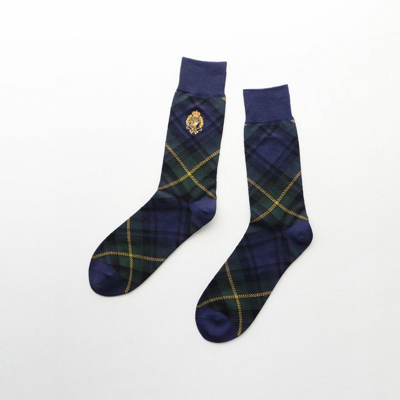 エンブレムが印象的でオシャレなタータンチェック柄ソックス