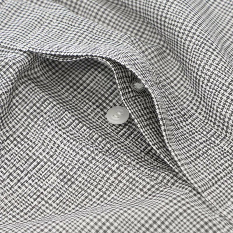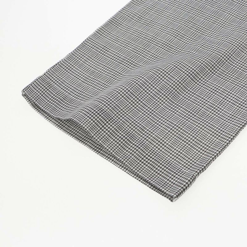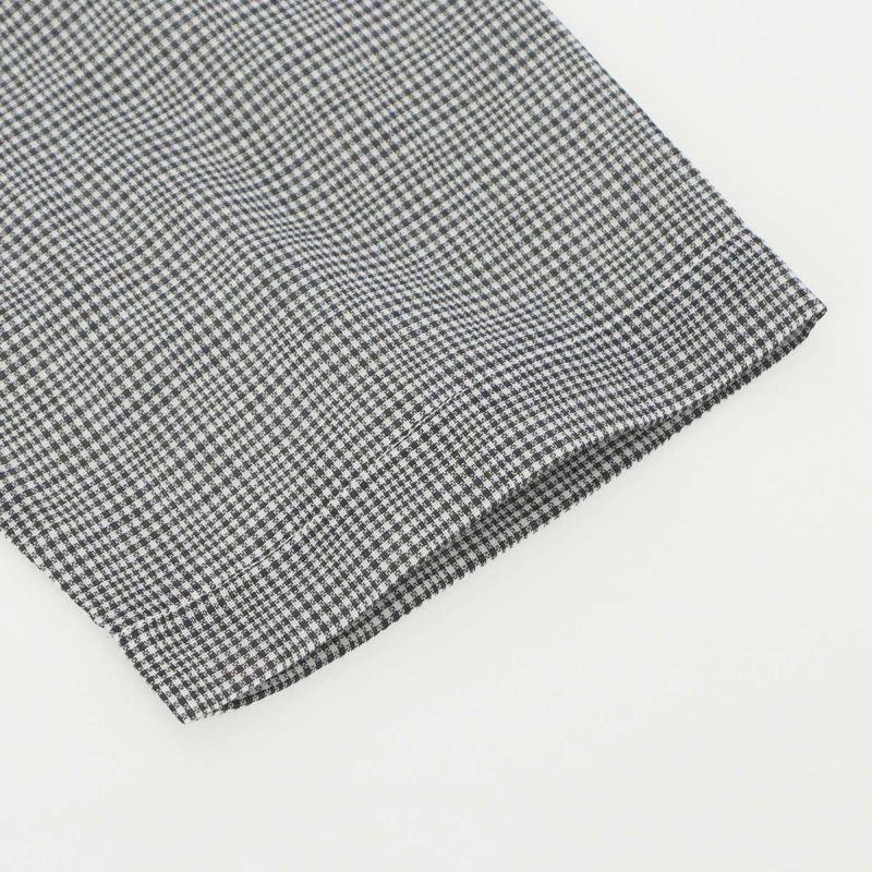 パジャマアイテムでは、一般的で代表的な2重ガーゼ素材です。飽きのこない細かい単色使いのチェック柄で、シンプルに仕上げました。