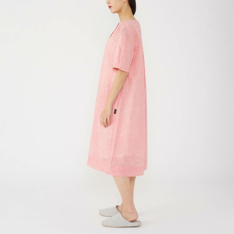 細番手のローンにリップル加工を施し、表面の波打ち効果で肌離れの良いアイテム。軽い着心地で爽やかな夏のリビングワンピースです。