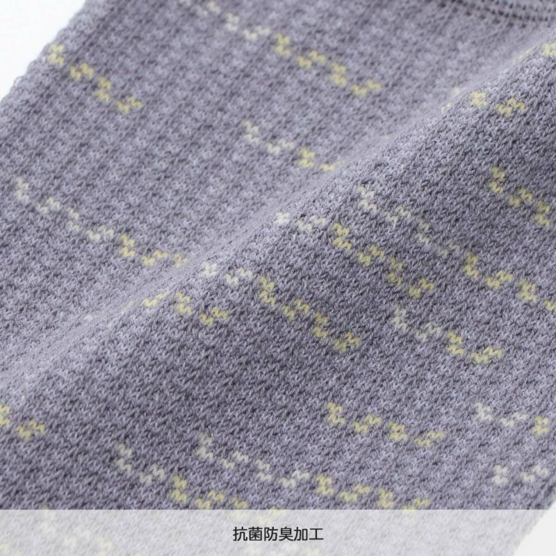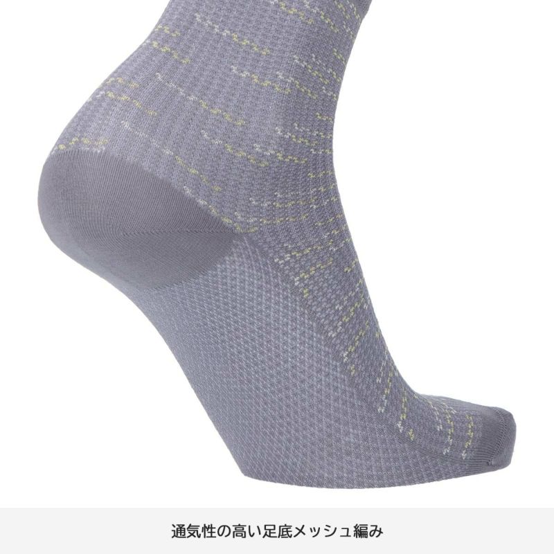 抗菌防臭加工、通気性の高い足底メッシュ編みで蒸れを解消し足元サラサラ、カスリ風ランダムドット柄