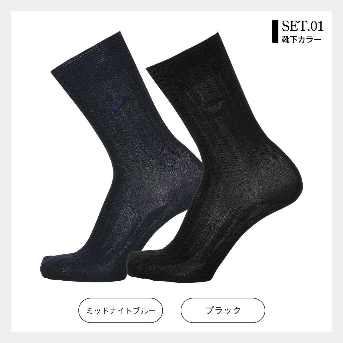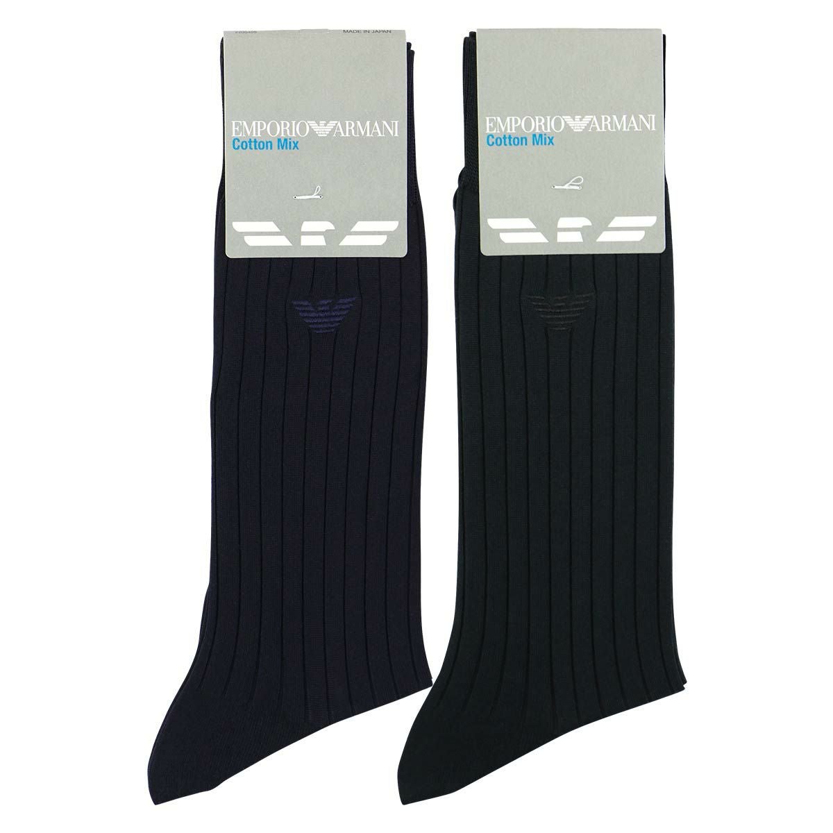 エンポリオ アルマーニ メンズ ソックス 箱 セット ご贈答用 EMPORIO ARMANI 箱入り靴下2足 ギフトセット オールシーズン用 Dress リブ クルー丈 メンズ 【365日最短翌日発送】 02492038(EA-2p) giftset