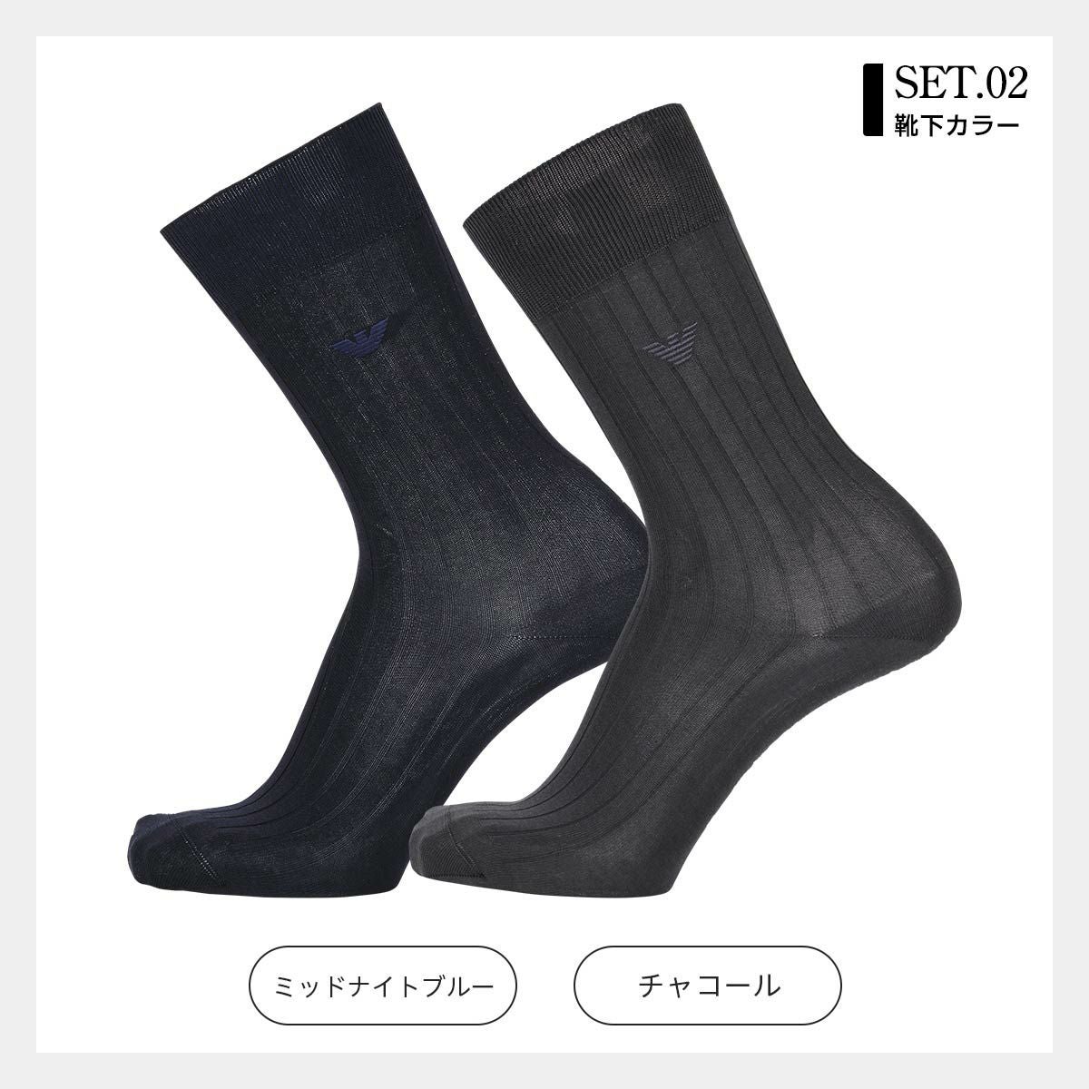 エンポリオ アルマーニ オールシーズン用 靴下 紳士 男性 セット EMPORIO ARMANI 【紙袋付き】 ギフトセット 2足セット Dress リブソックス クルー丈 メンズ 02492040(EA-2P-RB) giftset
