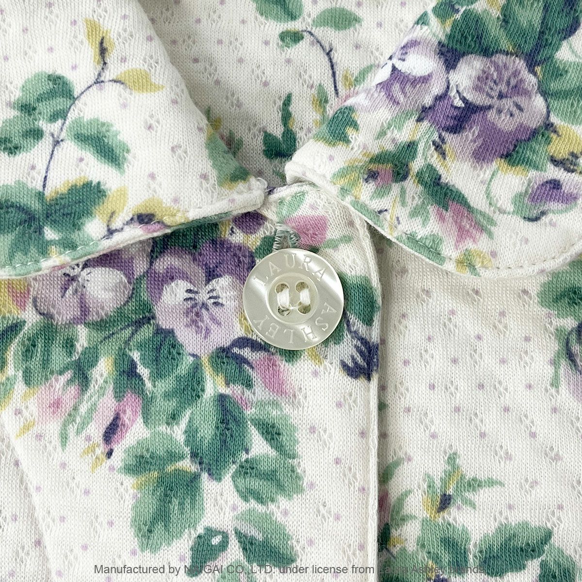 ローラアシュレイ 婦人 LAURA ASHLEY 長袖 寝巻 部屋着前ボタン ★【Lサイズ】LAURA ASHLEY コットン100% 中わたニットキルト ルイースフローラルパジャマ 長袖 長丈パンツ 前ボタン レディース 73285233