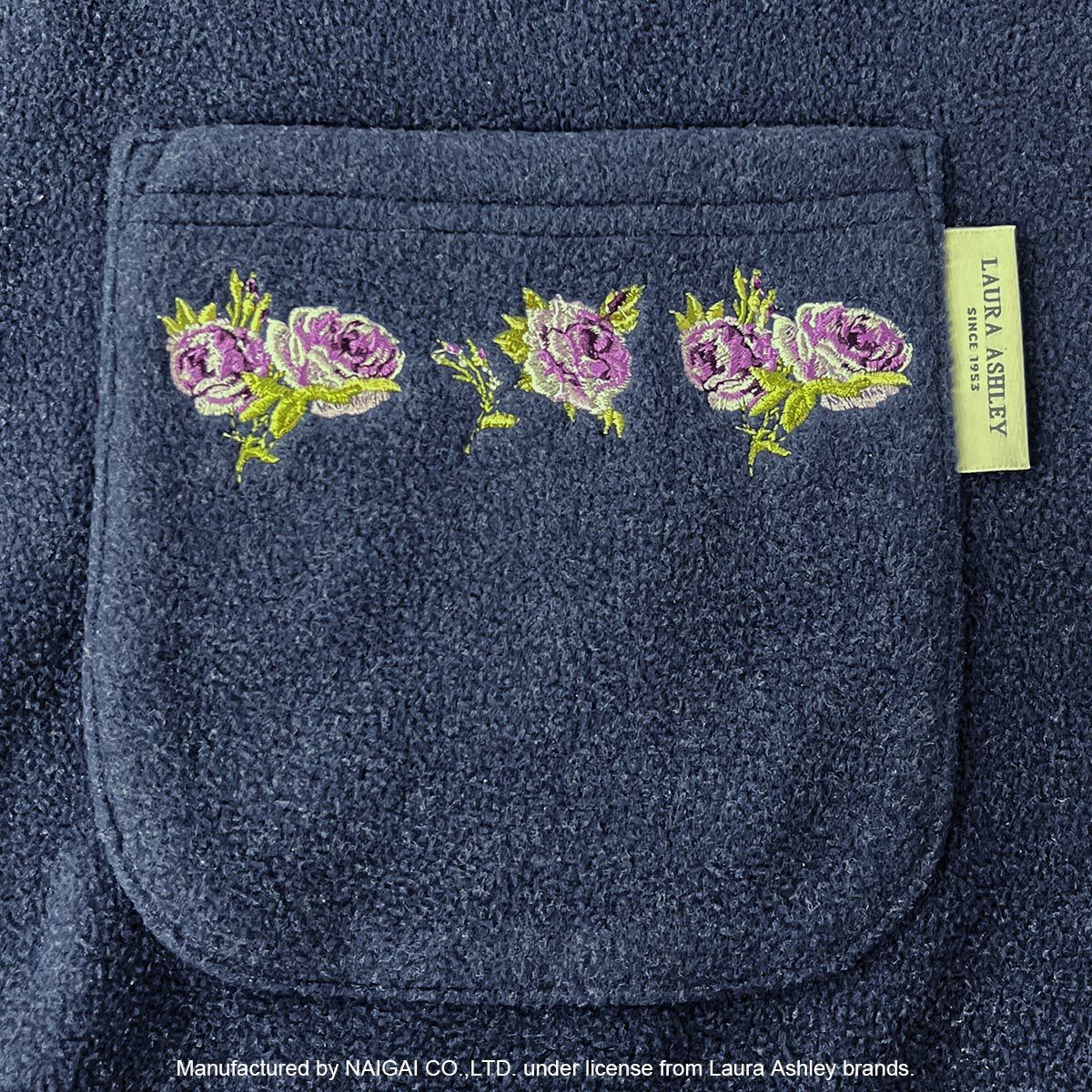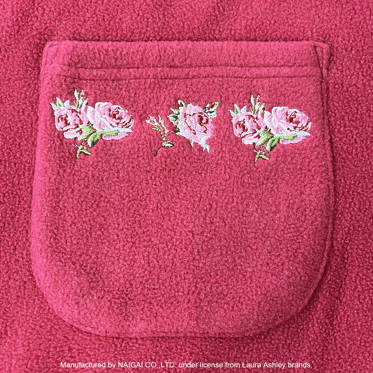 ローラアシュレイ 婦人 LAURA ASHLEY 長袖 寝巻 部屋着前ボタン 冬 ★LAURA ASHLEY 長袖 ボア フリース ロングガウン 無地×クチュールローズ刺しゅう レディース 73285260