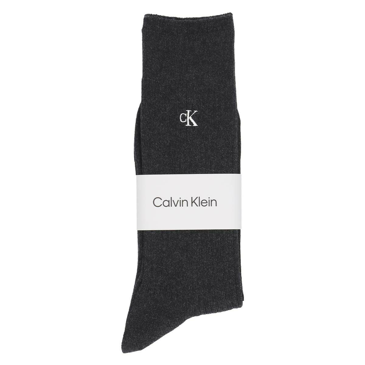 カルバンクライン【25-27cm】【27-29cm】紳士 靴下 Calvin Klein 綿混 毛混 ワンポイント クルー丈 ソックス メンズ 02542105
