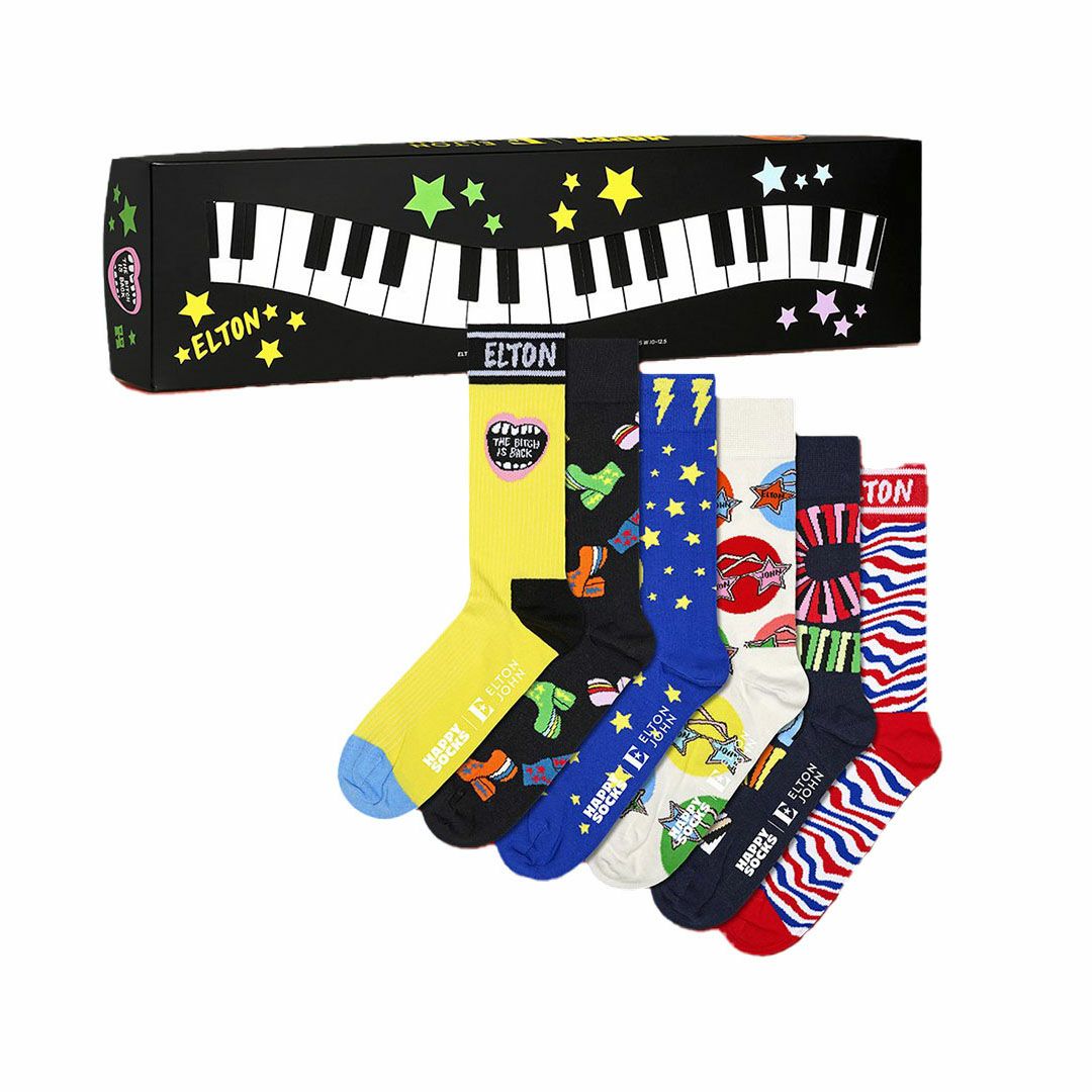 ハッピーソックス 公式ショップ メンズ & レディス コラボ 靴下 40%OFF 【6足セット】【Limited】Happy Socks × Elton John ( エルトン ジョン ) 6-Pack Gift Set GIFT BOX コラボ 6足組 クルー丈 ソックス ユニセックス 14243002