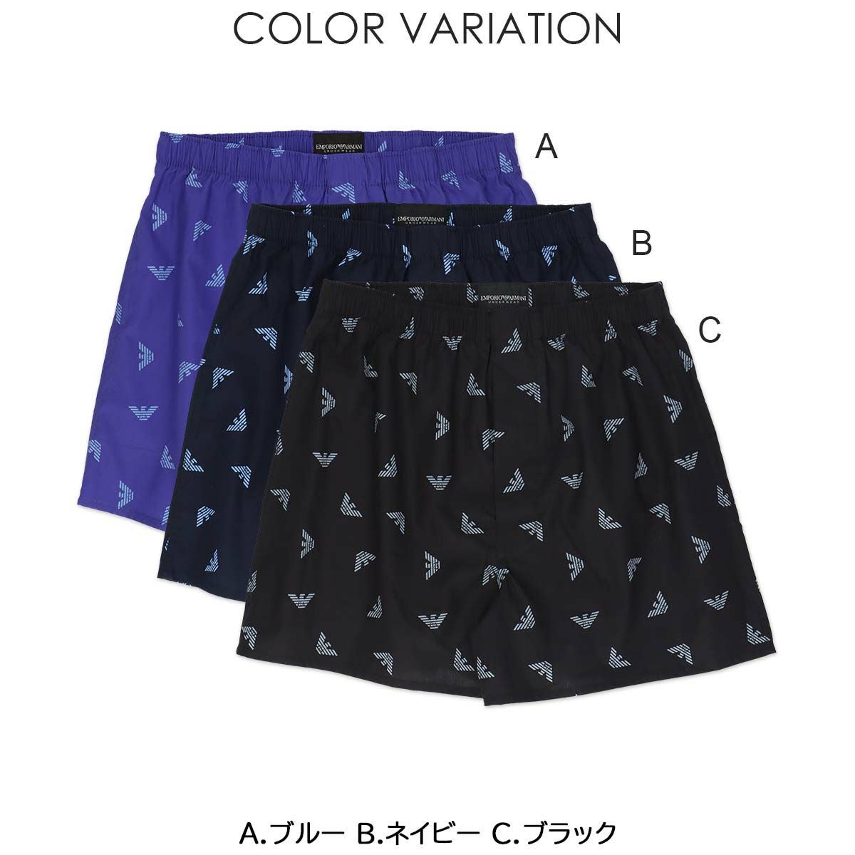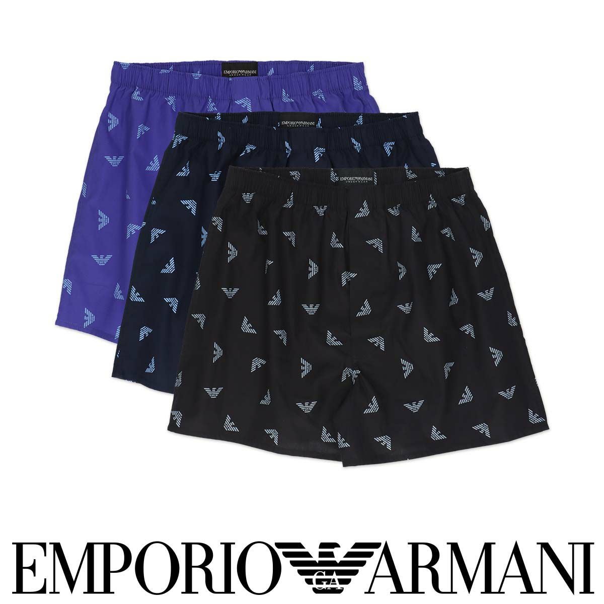 エンポリオ アルマーニ Underwear 公式オンラインショップ EMPORIO ARMANI FLYING EAGLE イーグル総柄 コットン ウーブン トランクス 【M/L】 前開き 日本サイズ メンズ 54240002