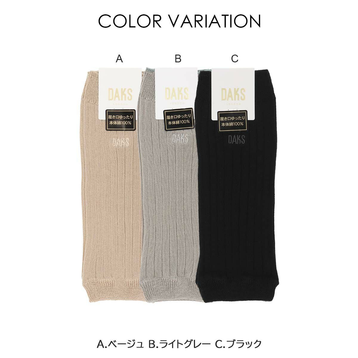 DAKS ダックス 日本製 公式オンラインショップ 婦人 靴下 DAKS 履き口ゆったり 口ゴムソフト オーガニックコットン混 平無地 ハイソックス レディース 03367072
