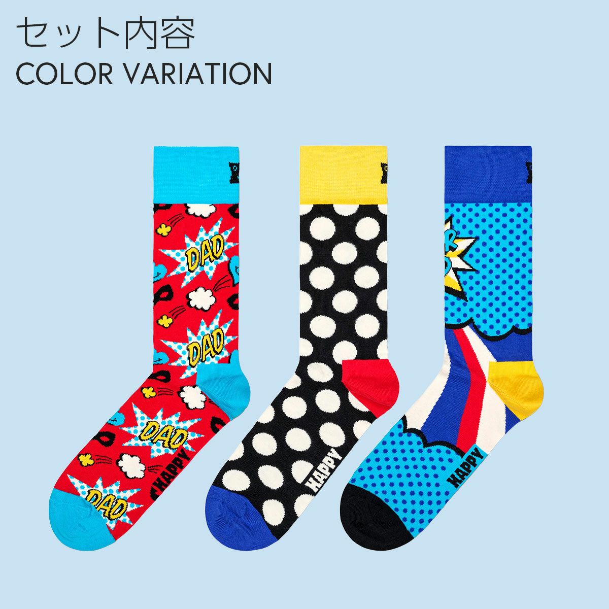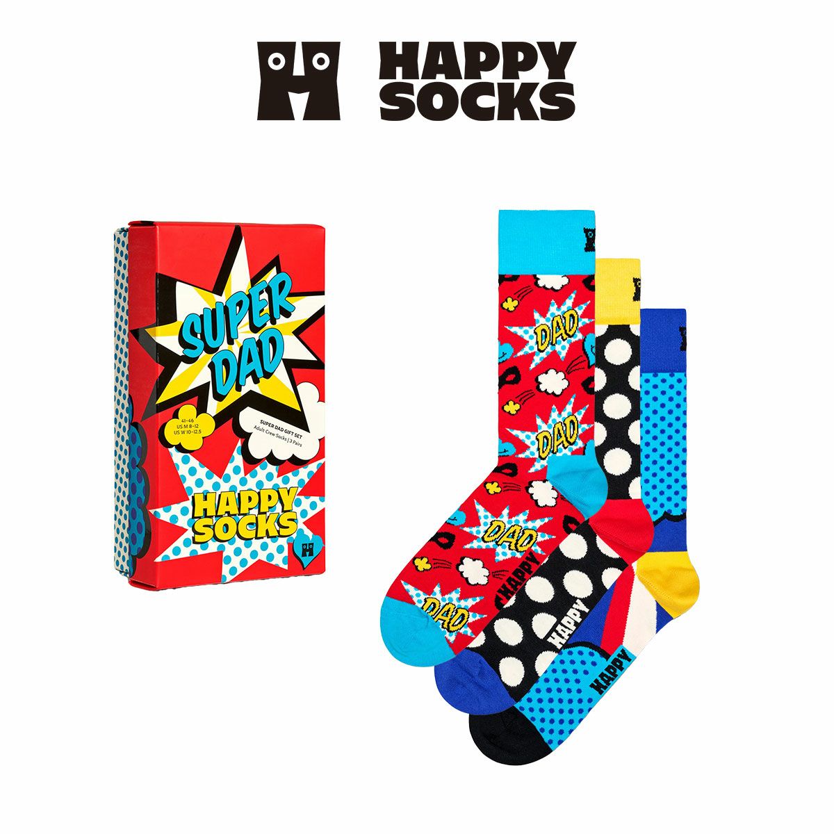 ハッピーソックス 公式ショップ メンズ & レディス 靴下 41%OFF Happy Socks 3足セット 箱入り|Super Dad ( スーパーダッド )【GIFT BOX】クルー丈 ソックス ユニセックス 10243411