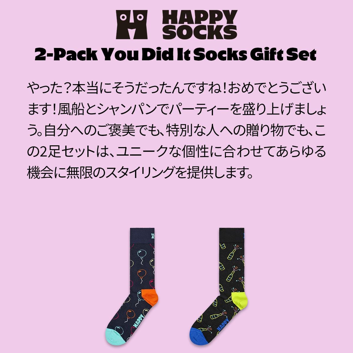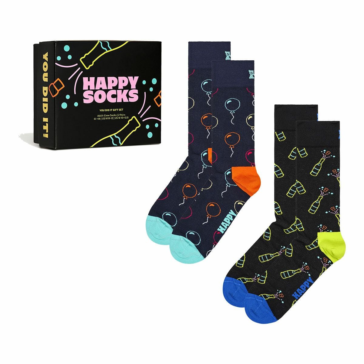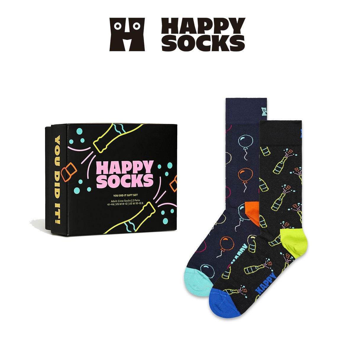 ハッピーソックス 公式ショップ メンズ & レディス 靴下 40%OFF Happy Socks 2足セット 箱入り|You Did It ( ユーディドイット )【GIFT BOX】クルー丈 ソックス ユニセックス 10254020