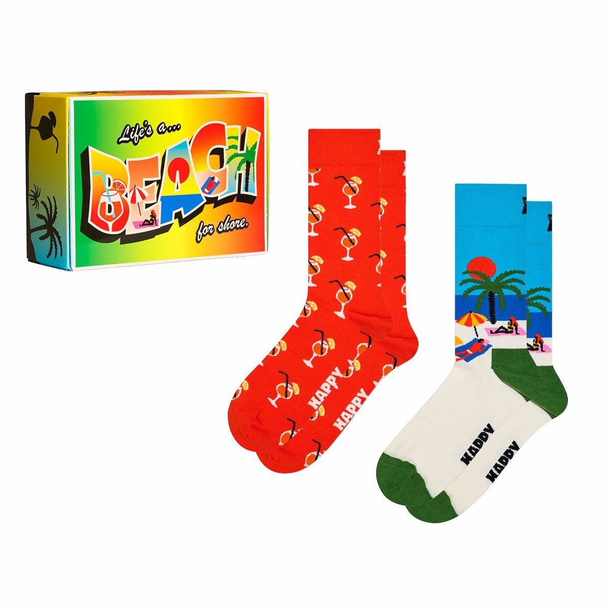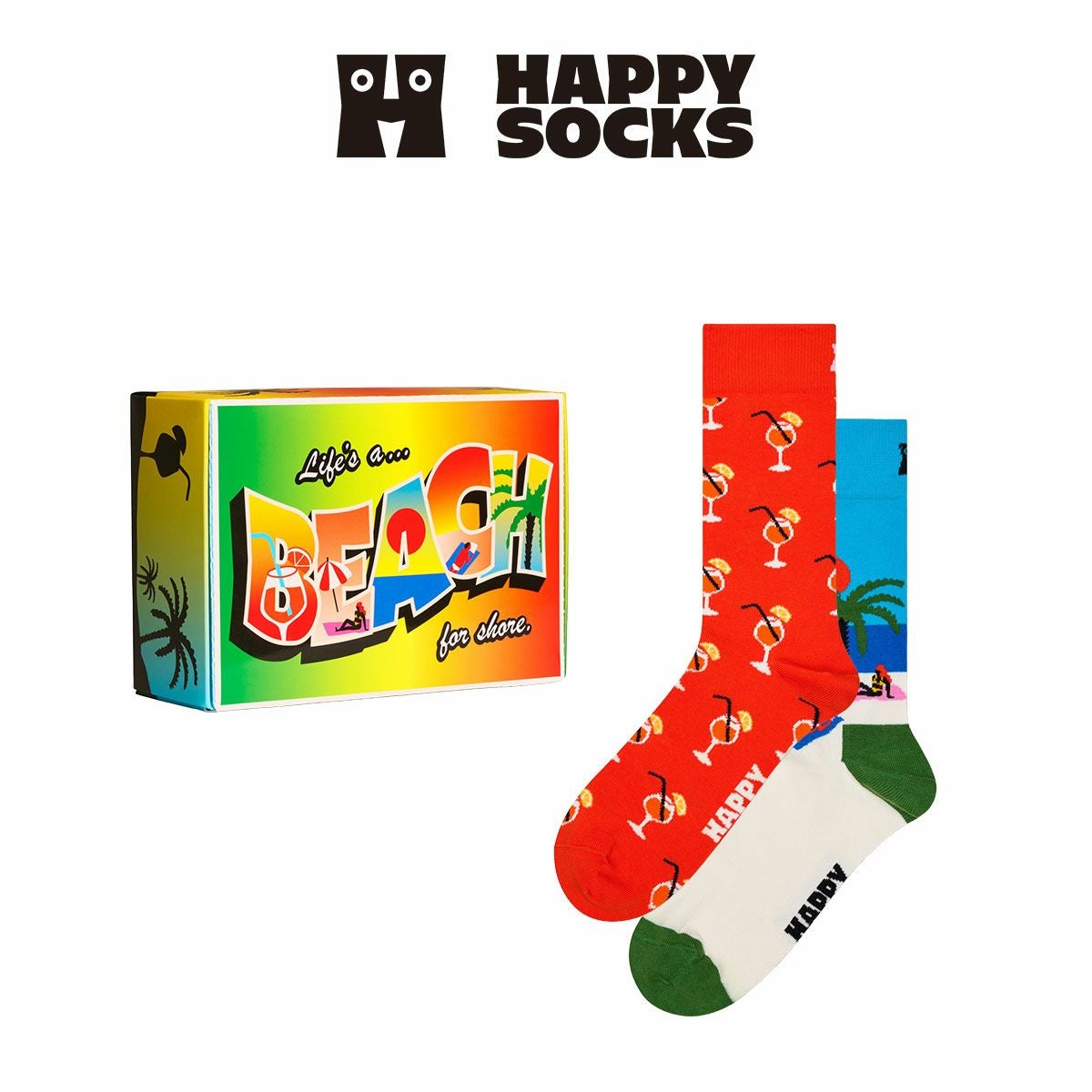 ハッピーソックス 公式ショップ メンズ & レディス 靴下 42%OFF Happy Socks 2足セット 箱入り|Beach Life ( ビーチライフ )【GIFT BOX】クルー丈 ソックス ユニセックス 10254006